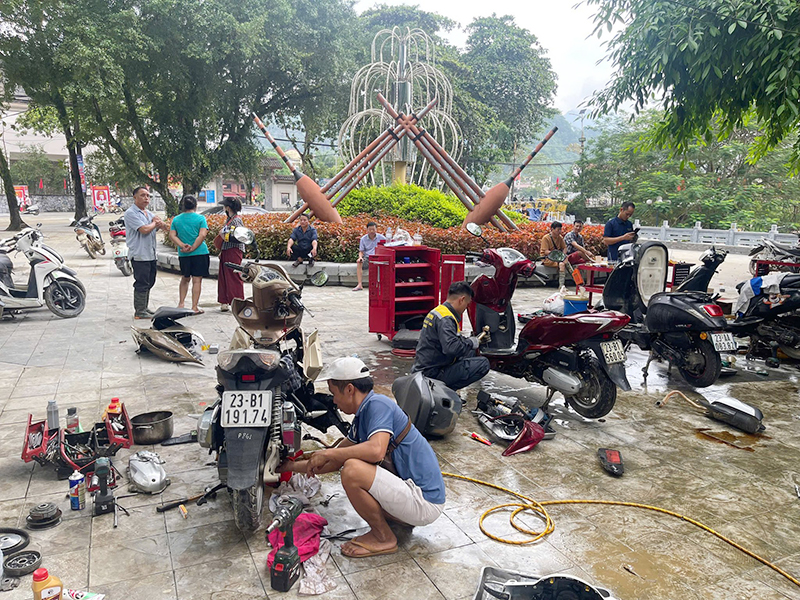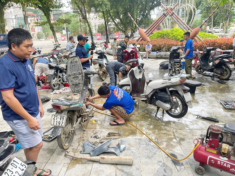 Sửa chữa xe máy miễn phí giúp người dân khắc phục hậu quả mưa lũ