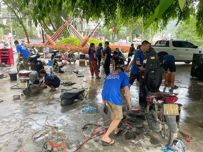 Sửa chữa xe máy miễn phí giúp người dân khắc phục hậu quả mưa lũ